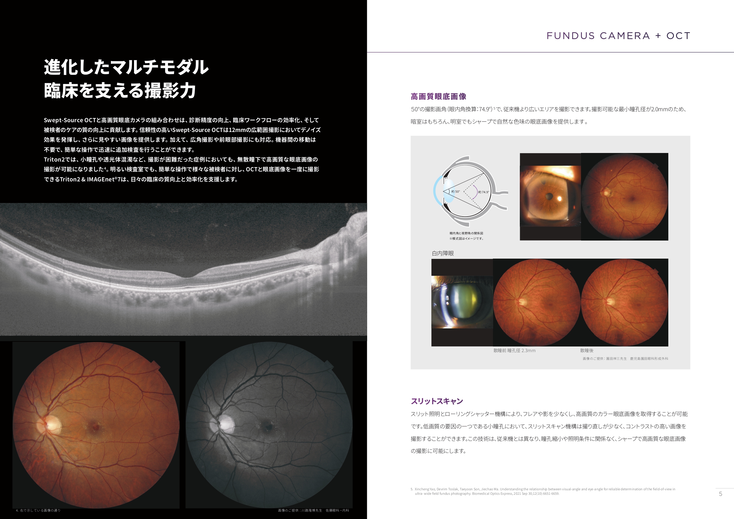 3次元(3D)眼底画像撮影装置の新型機「DRI OCT Triton2」を発売しました。Triton2は、臨床現場での検査効率向上と複合画像診断の支援に向けて開発した3D眼底画像撮影装置の次世代モデルとなります。高速・高密度スキャンや網膜深部まで到達する高い信号効率といった従来機の特徴を継承しつつ、日常臨床での使い勝手を高めるため、操作性や撮影性能を向上させた。最大の特徴は、新たに小瞳孔(直径2.0mm以上)でもカラー眼底像を取得できる技術を搭載。1回の撮影でカラー眼底画像と光干渉断層計(OCT)による網膜の断面画像を取得でき、患者の移動負担の軽減と検査時間の短縮につなげる。