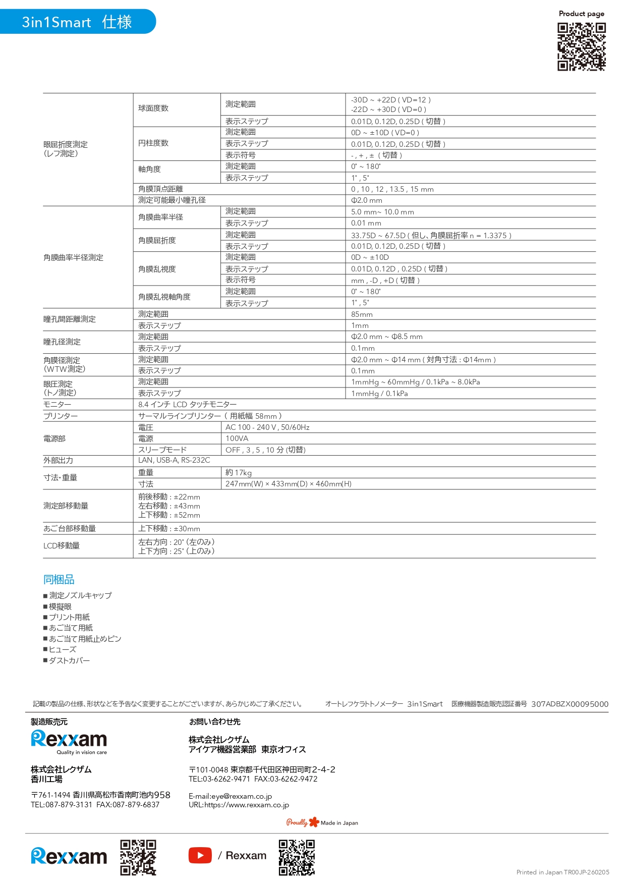 名称:3in1 Smart オートレフ・ケラトメーター・トノメータ