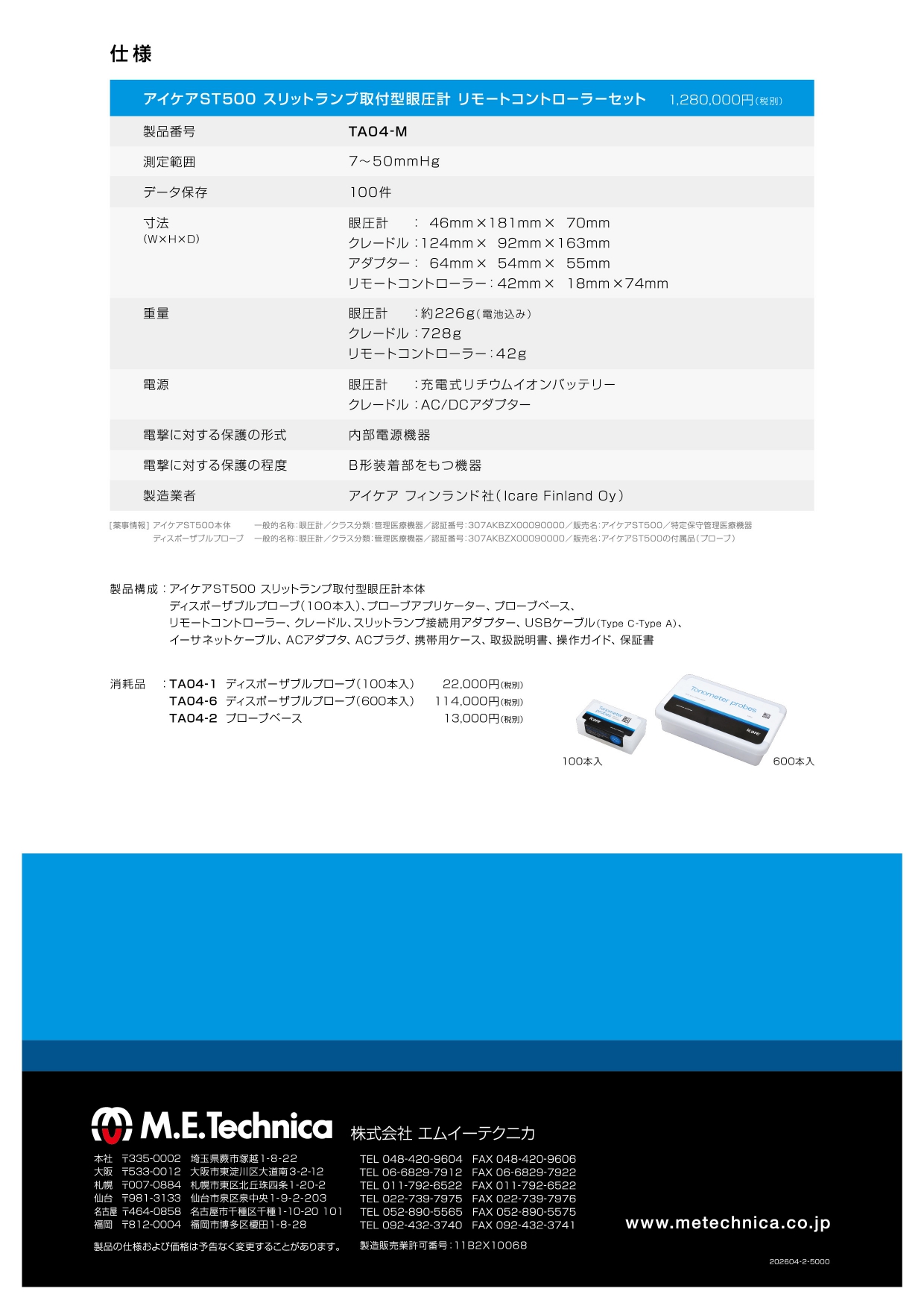 名称:アイケアST500 スリットランプ取付型眼圧計 販売元:株式会社エムイーテクニカ